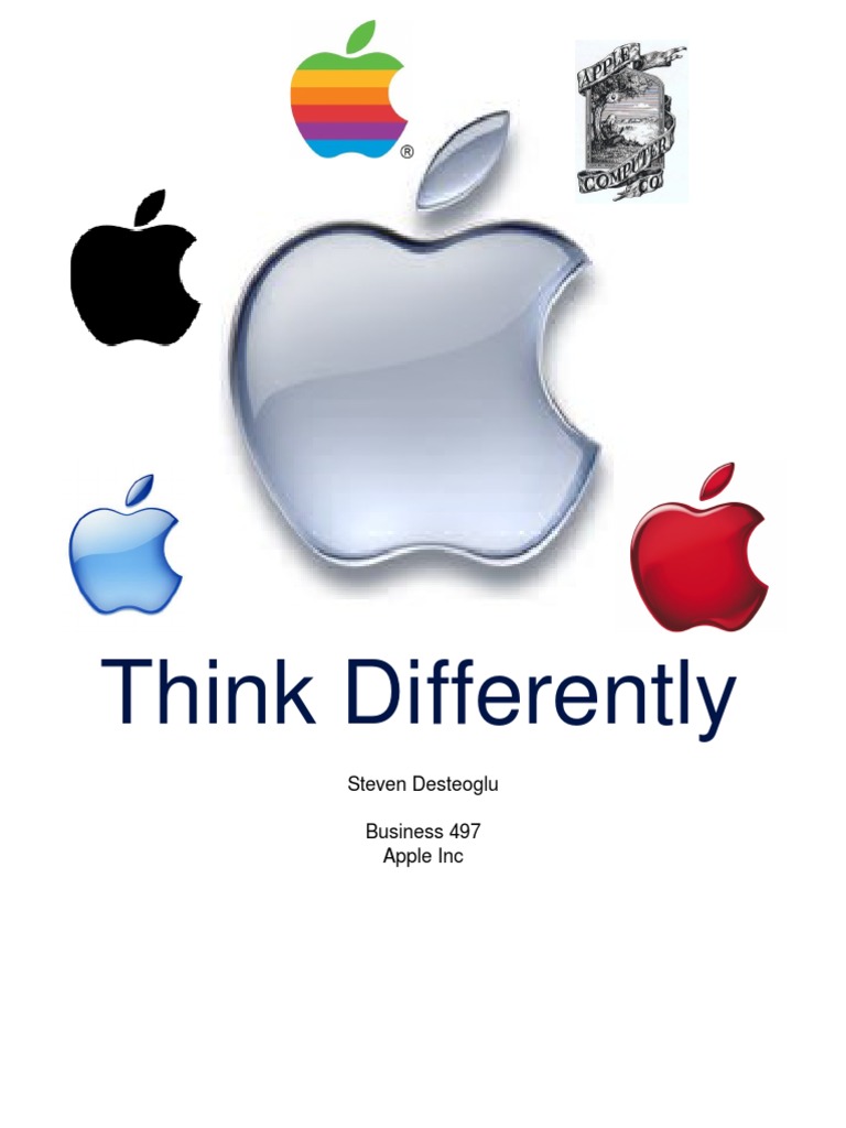 History.............................................................................3 Key Leaders....................................................................17 Tim Cook...............................................................18 Scott Forstall..........................................................20 Jonathan Ive..........................................................21 Steve Jobs.............................................................22 Mission and Vision Statement Mission Statement Analysis...................................24 Vission Statement..................................................29 Organizational Assesment IFE.........................................................................31 External Environmental Analysis Porters 5 Forces.....................................................35 NACIS Code...........................................................37 EFE.........................................................................38 Stakeholder Analysis Stakeholder Analysis...............................................42 Top 15 Stakeholders................................................44 Strategic Decision tools Temporal SWOT.......................................................58 Performance Analysis Financial Performance.............................................61 Appendixes Appendix E..............................................................74 Works Cited........................................................................90
