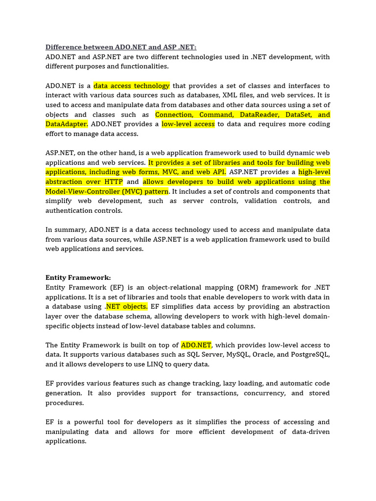 ADO.NET and ASP.NET are two different technologies used in .NET development, with