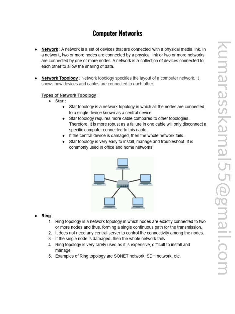 5. Examples of Ring topology are SONET network, SDH network, etc.