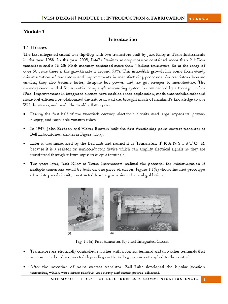 [VLSI DESIGN| MODULE 1 : INTRODUCTION & FABRICATION 17EC 63