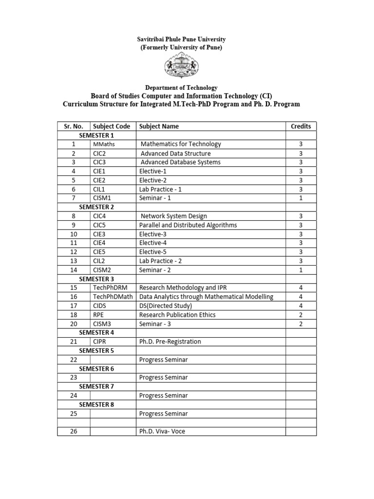Curriculum Structure for Integrated M.Tech-PhD Program and Ph. D. Program