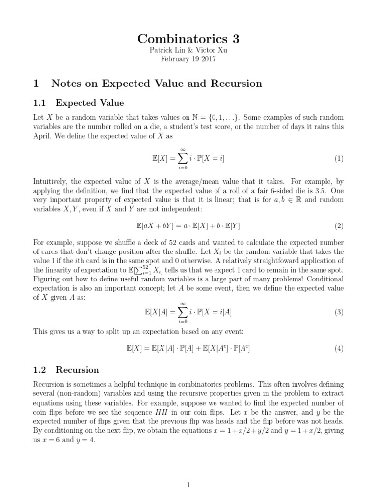 equations using these variables. For example, suppose we wanted to find the expected number of