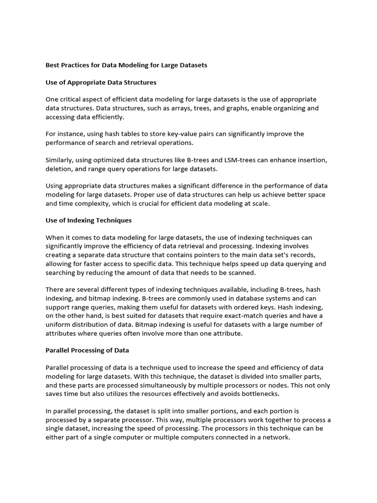 One critical aspect of efficient data modeling for large datasets is the use of appropriate