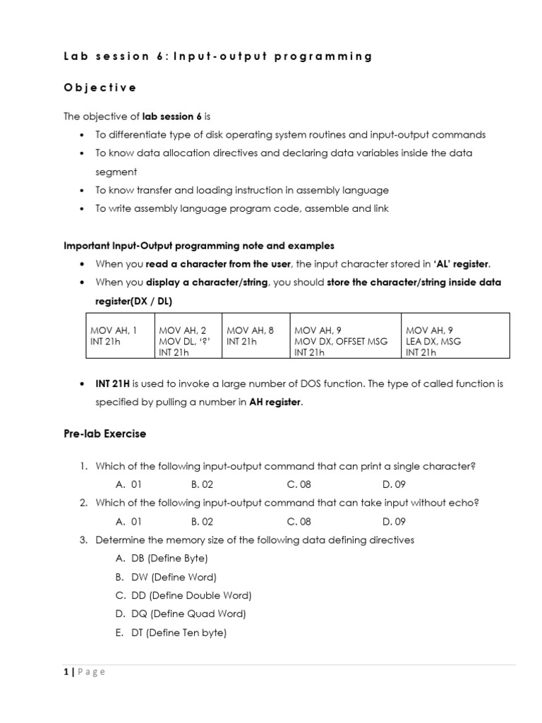 Lab session 6: Input-output programming