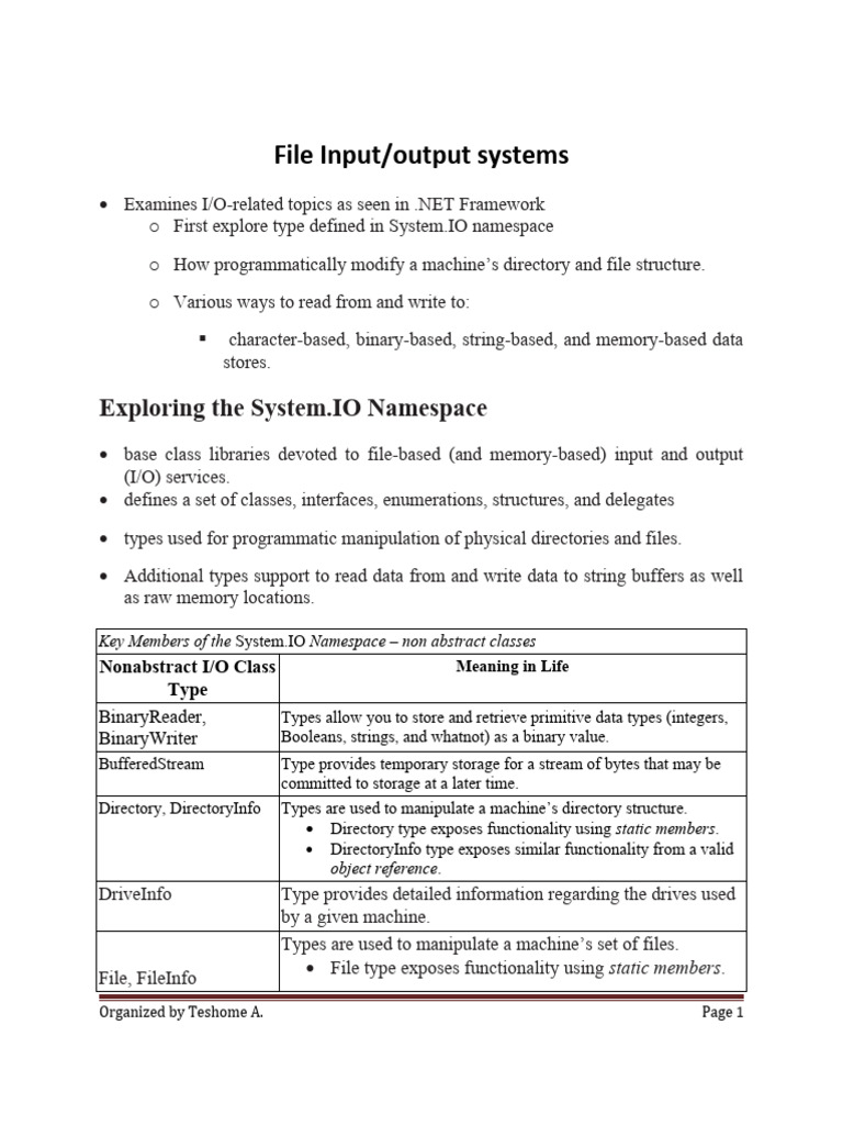 In addition, System.IO defines a number of enumerations, as well as a set of