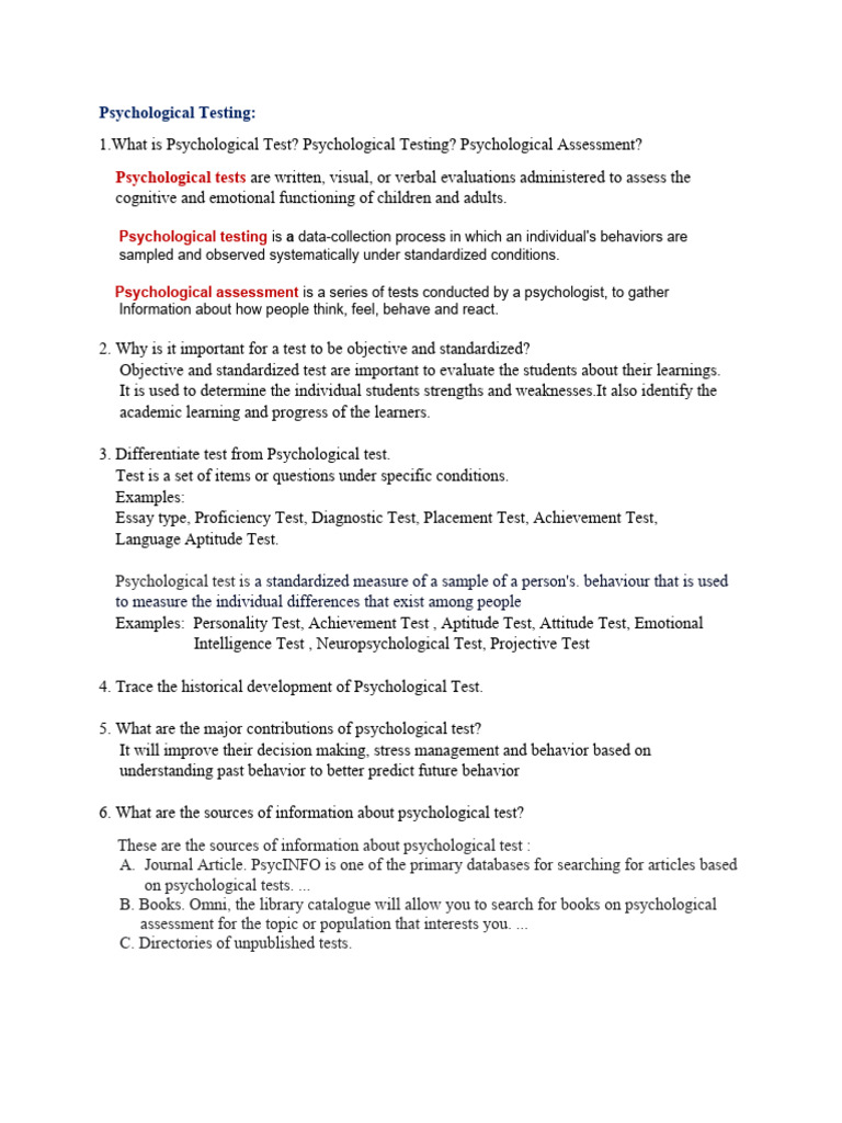 1.What is Psychological Test? Psychological Testing? Psychological Assessment?