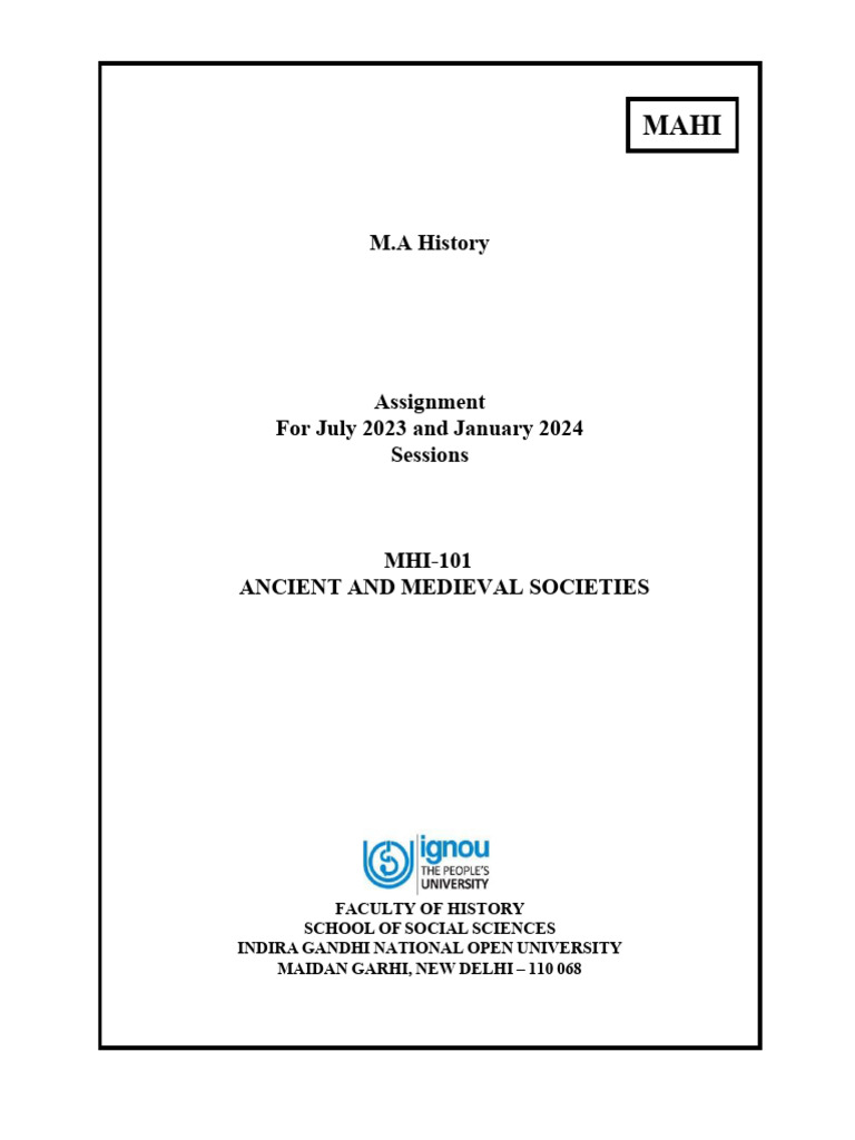 MHI-101: ANCIENT AND MEDIEVAL SOCIETIES