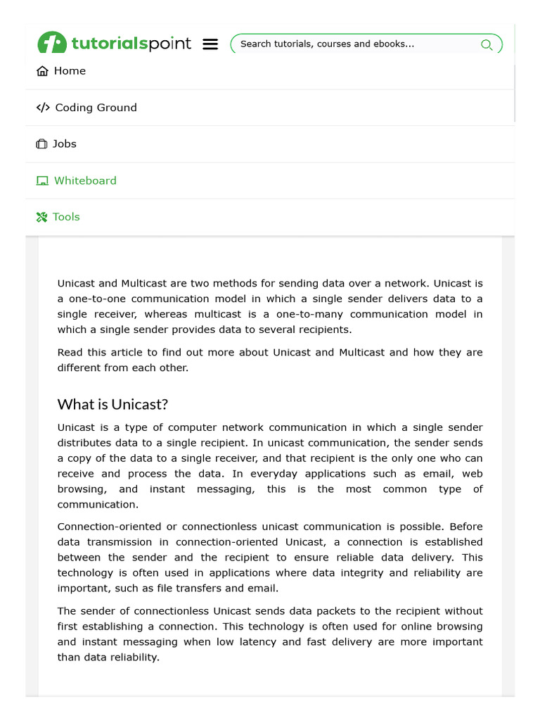 Unicast and Multicast are two methods for sending data over a network. Unicast is