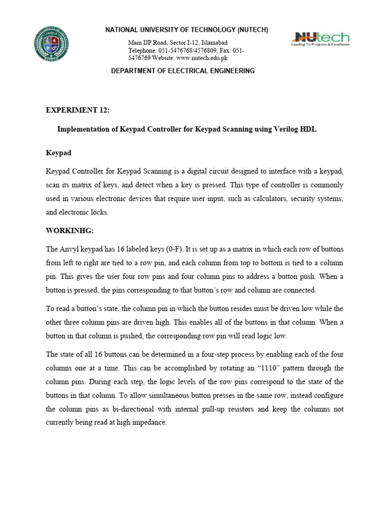 Keypad Controller for Keypad Scanning is a digital circuit designed to interface with a keypad,