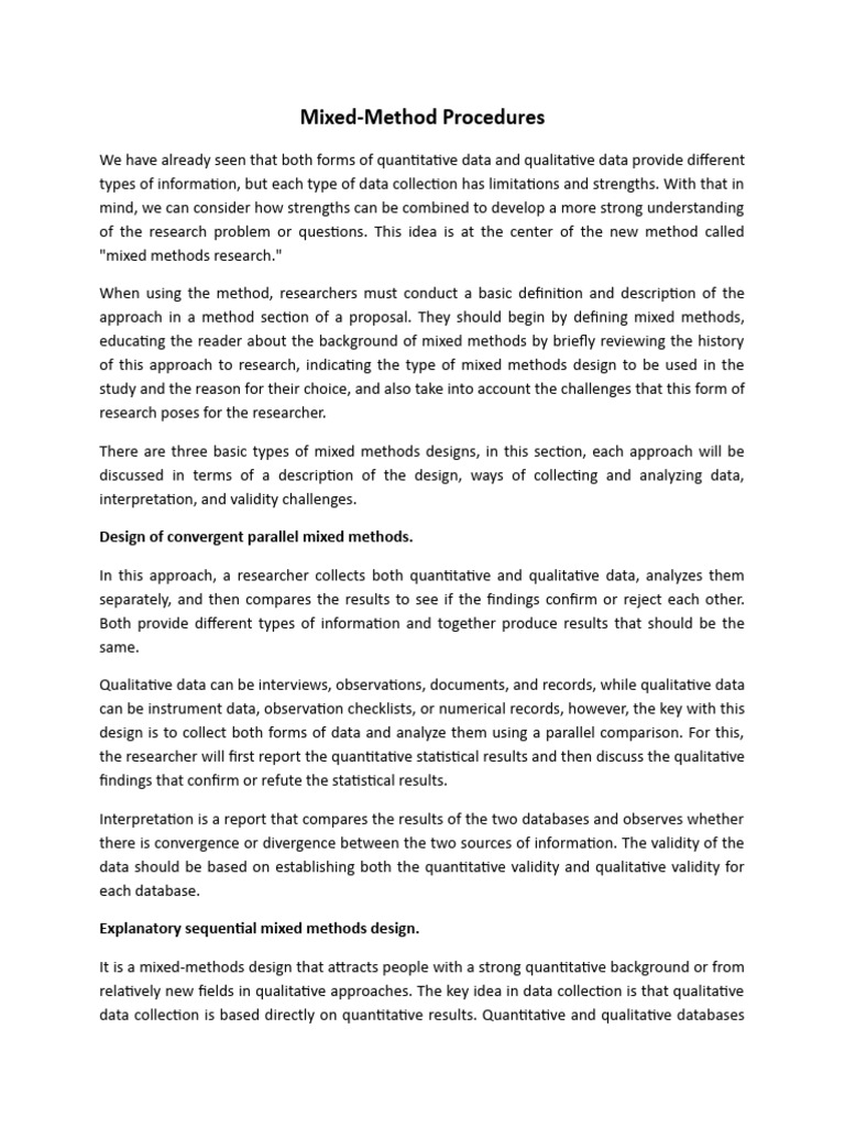 approach in a method section of a proposal. They should begin by defining mixed methods,