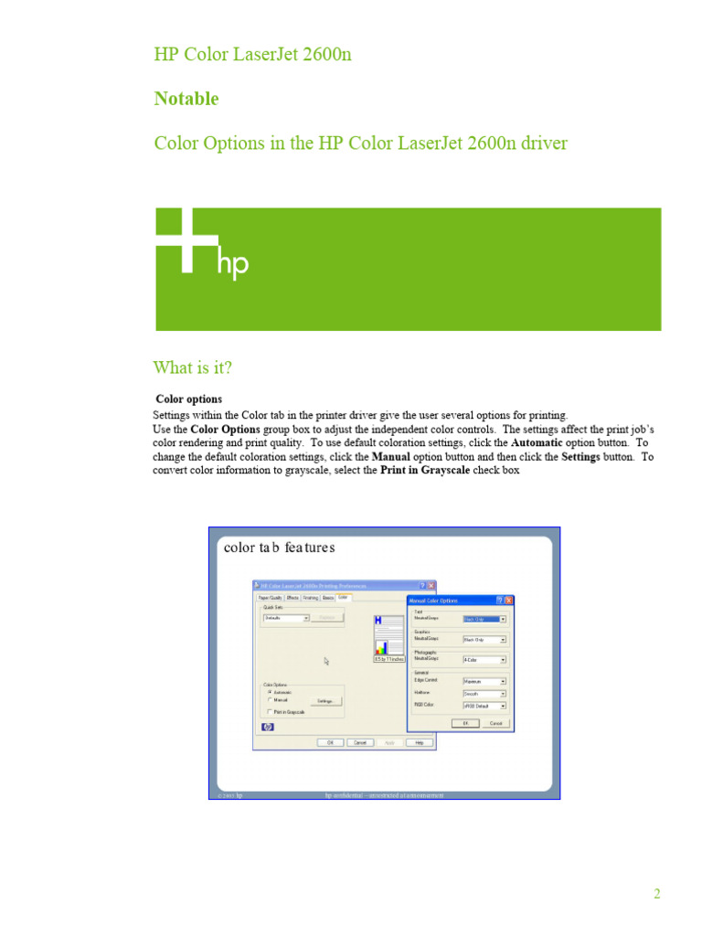 color rendering and print quality. To use default coloration settings, click the Automatic option button. To