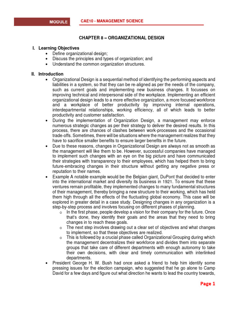 CHAPTER 8 – ORGANIZATIONAL DESIGN