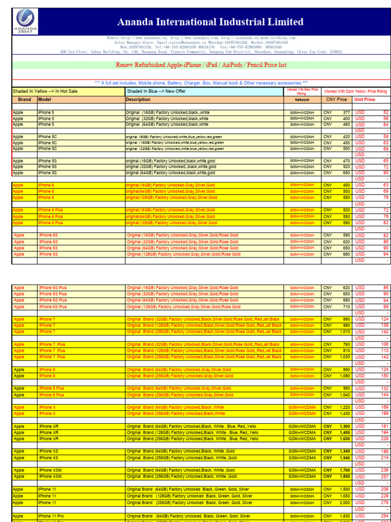 Ananda International Industrial Limited: Renew Refurbished Apple-Iphone / Ipad / Airpods / Pencil Price List