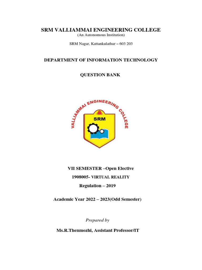 5 Explain the role of VR environment incorporates in future. (15) BTL 5 Evaluating
