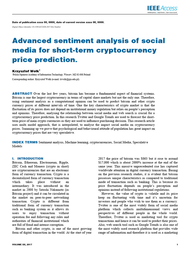 INDEX TERMS Sentiment analysis, Machine learning, cryptocurrencies, Social Media, Speculative