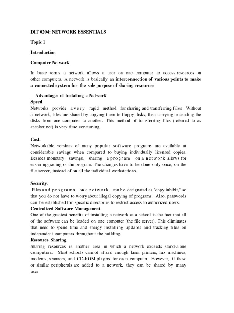 DIT 0204: NETWORK ESSENTIALS
