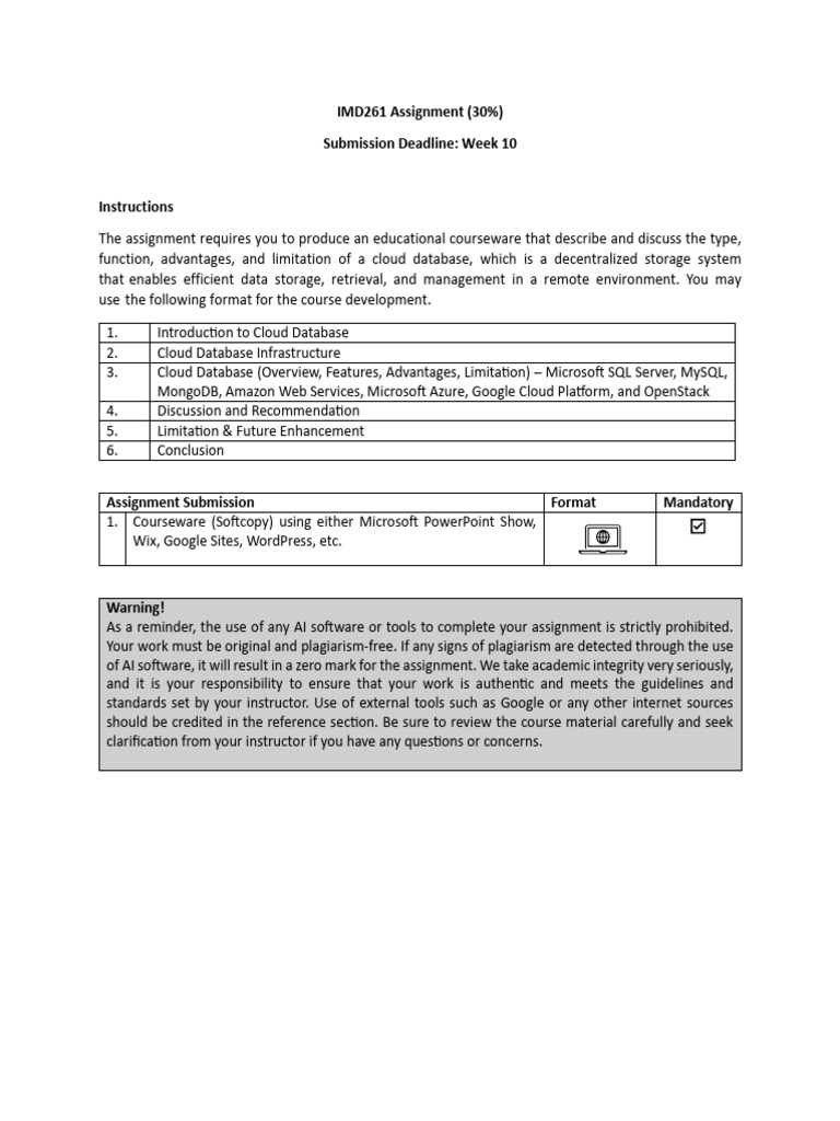 The assignment requires you to produce an educational courseware that describe and discuss the type,
