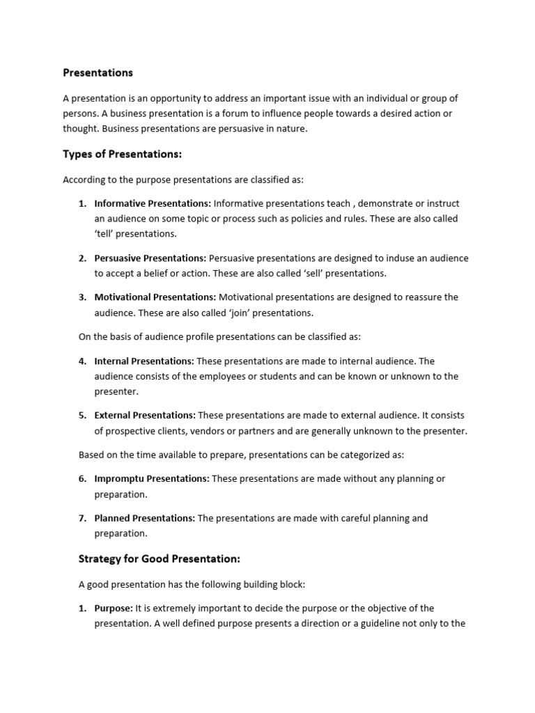 3. Structure of the Presentation: A well crafted presentation is arranged in logical and