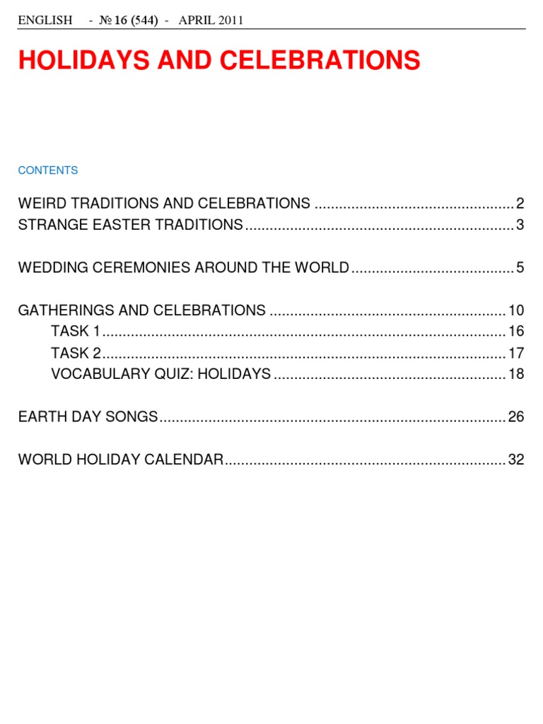 Holidays and Celebrations: ENGLISH - 16 (544) - APRIL 2011