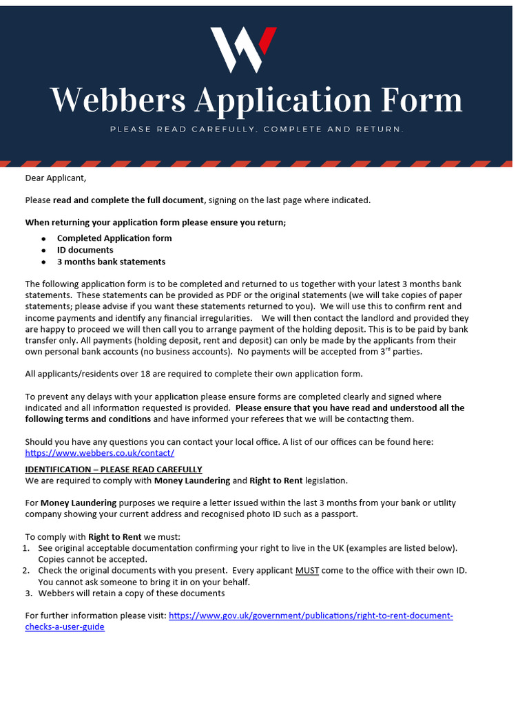 on our website www.webbers.co.uk Driving license or a utility or other bill less than 3 months