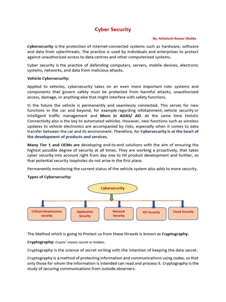 Applied to vehicles, cybersecurity takes on an even more important role: systems and