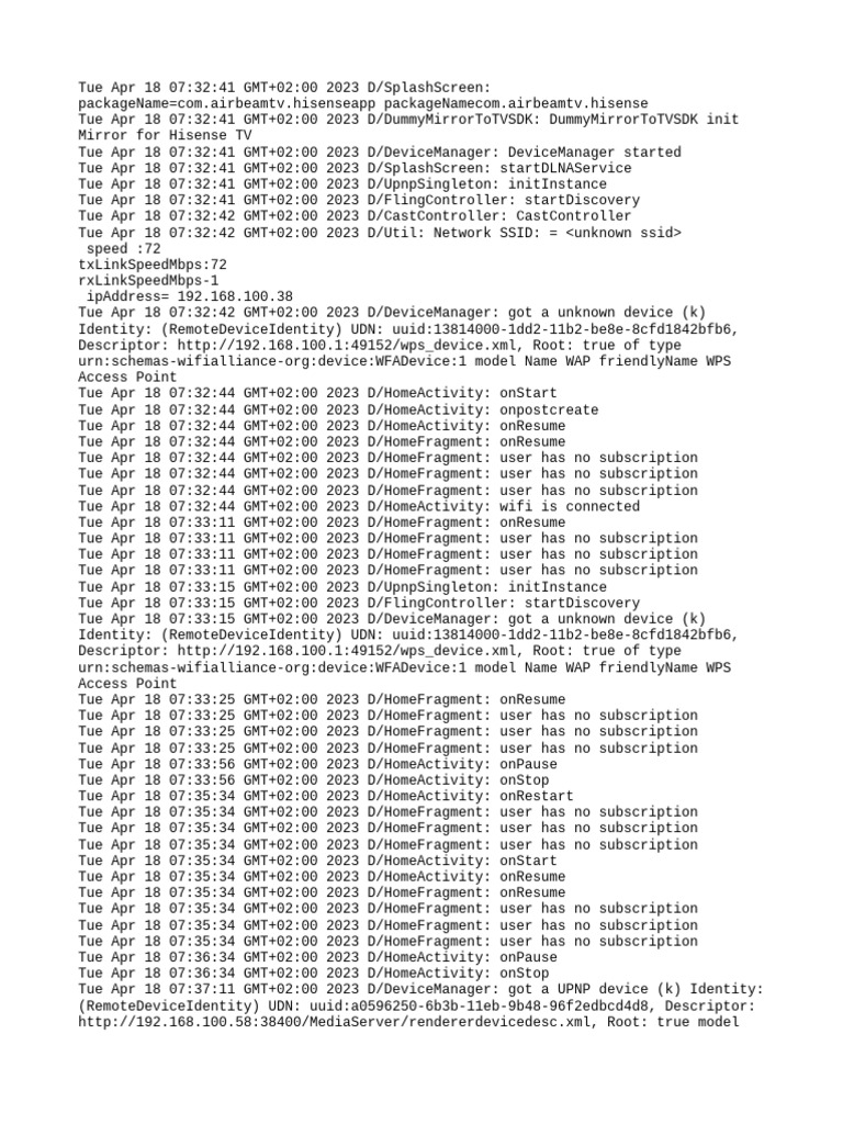 Tue Apr 18 07:37:30 GMT+02:00 2023 D/DeviceManager: setting as cur device Hisense