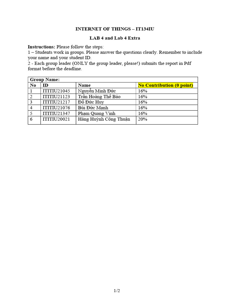 1 – Students work in groups. Please answer the questions clearly. Remember to include