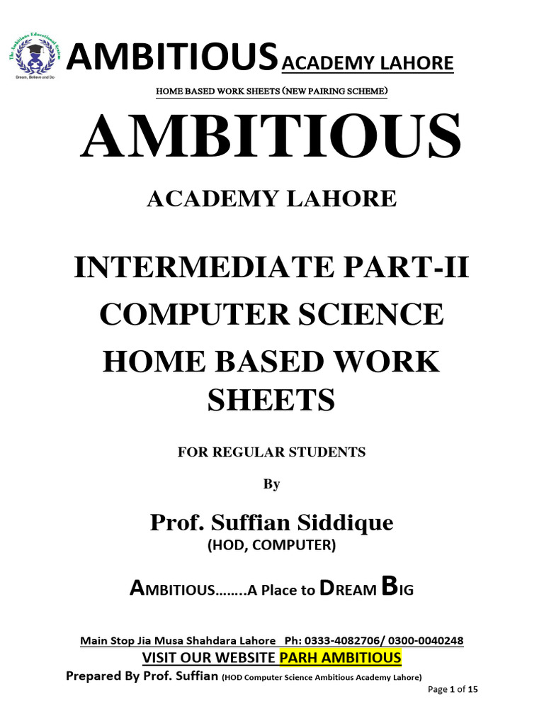 Prepared By Prof. Suffian (HOD Computer Science Ambitious Academy Lahore)