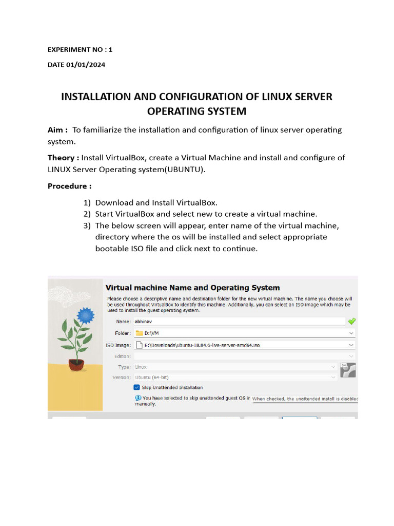 INSTALLATION AND CONFIGURATION OF LINUX SERVER