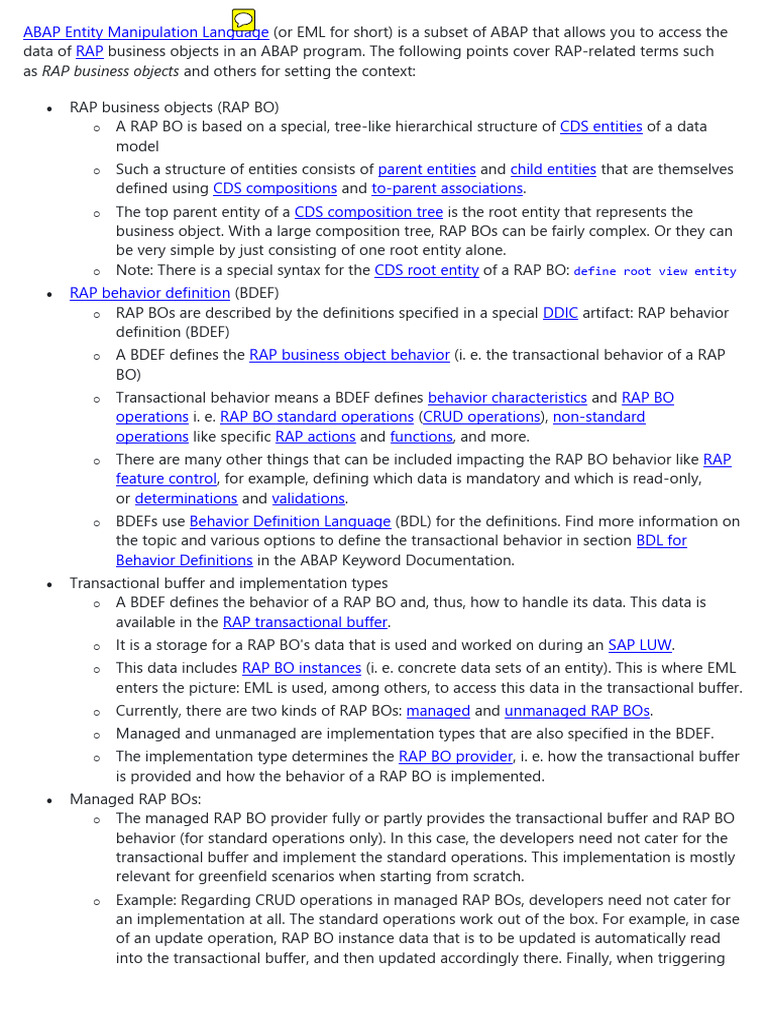 Section ABAP for RAP Business Objects in the ABAP Keyword Documentation including EML