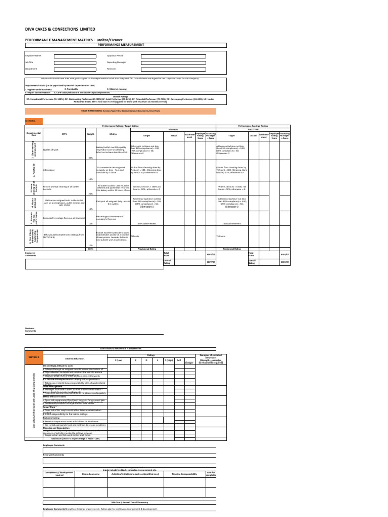 PERFORMANCE MANAGEMENT MATRICS - Janitor/Cleaner