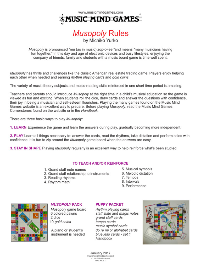 Games website is an excellent way to prepare. Before playing Musopoly, read the Music Mind Games