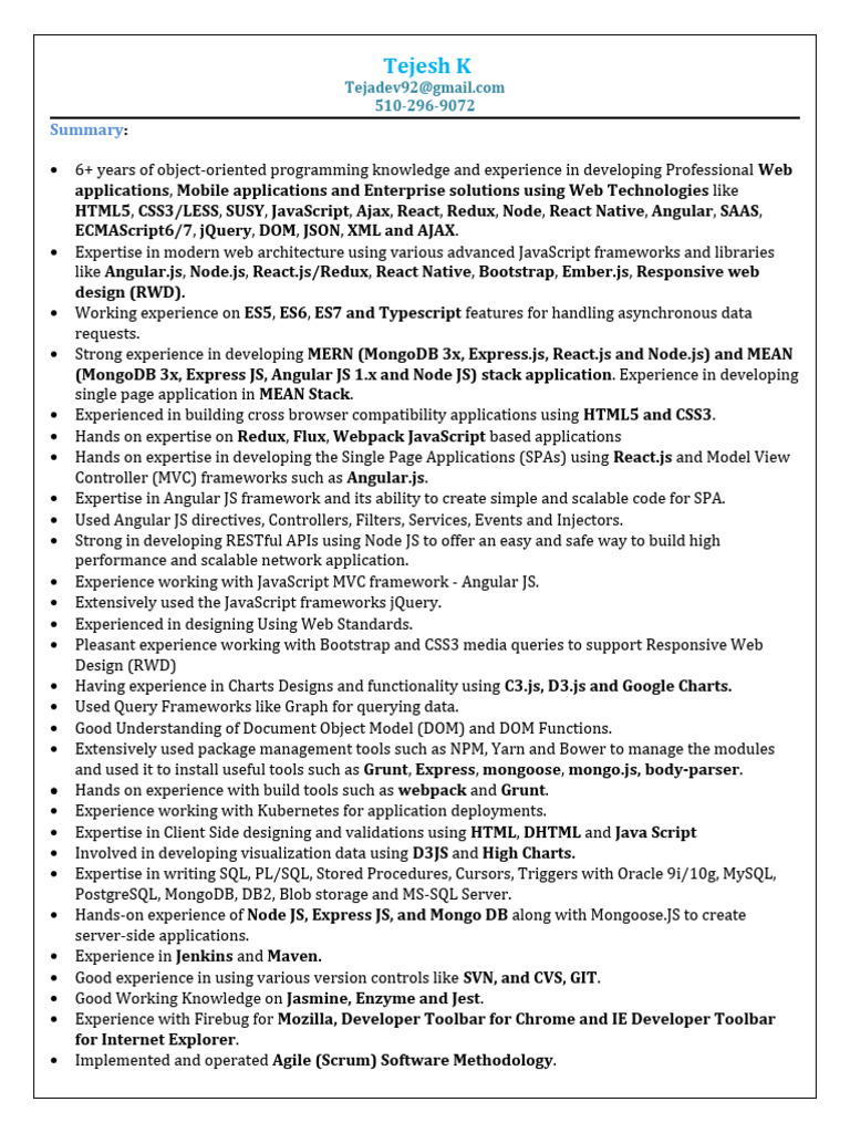 like Angular.js, Node.js, React.js/Redux, React Native, Bootstrap, Ember.js, Responsive web
