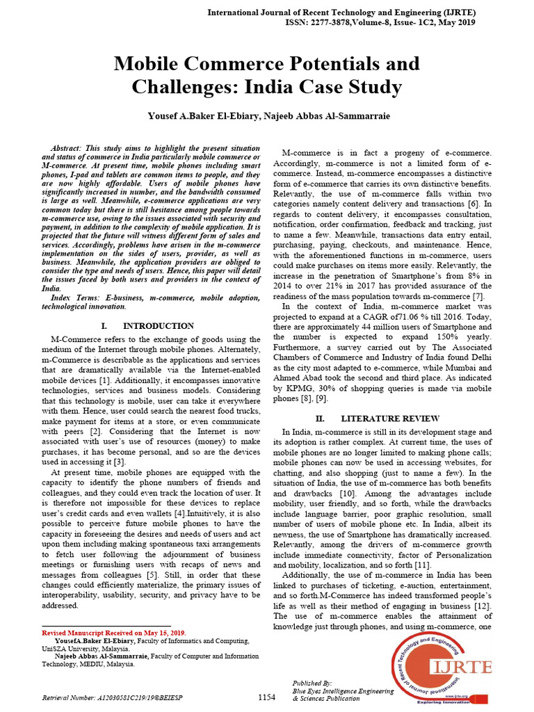 with peers [2]. Considering that the Internet is now In India, m-commerce is still in its development stage and