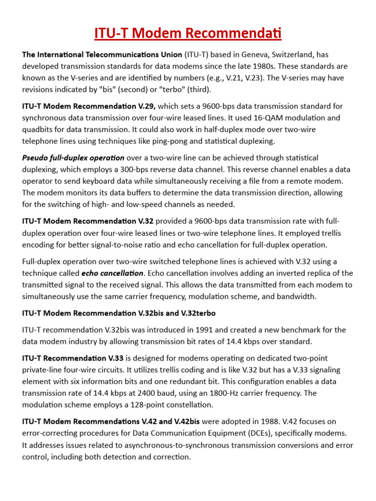 known as the V-series and are identified by numbers (e.g., V.21, V.23). The V-series may have