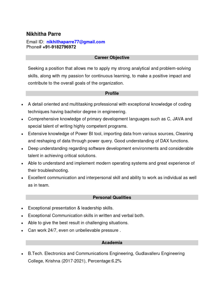 Excellent communication and interpersonal skill and ability to work as individual as well