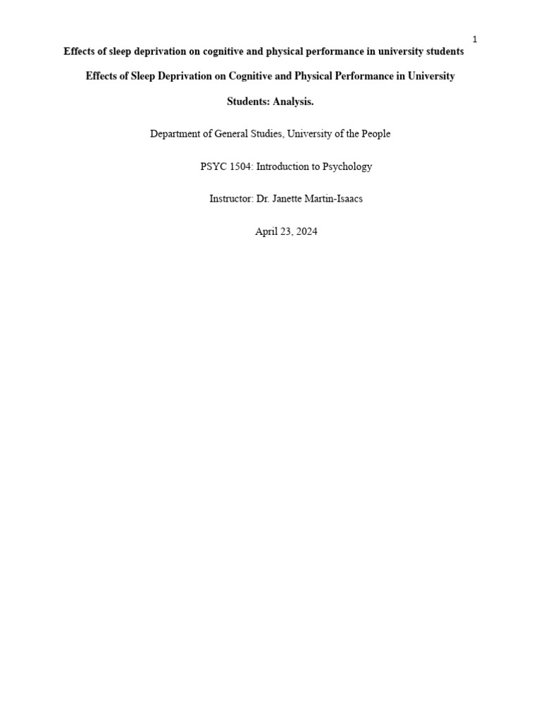 Effects of Sleep Deprivation on Cognitive and Physical Performance in University