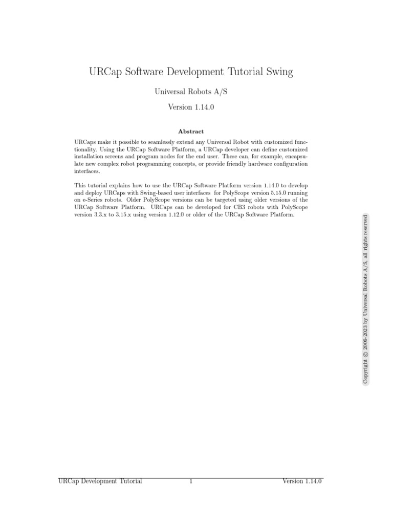 This tutorial explains how to use the URCap Software Platform version 1.14.0 to develop