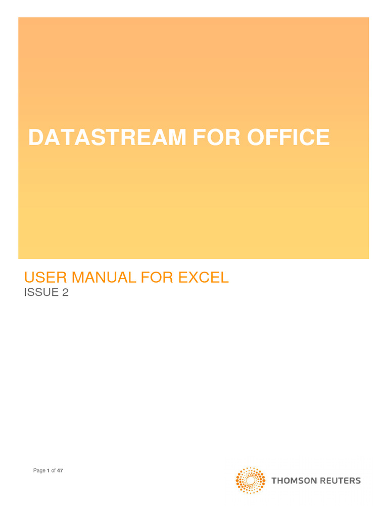 For assistance on using Thomson Reuters Datastream's Excel functionality and content - use the Contact Us