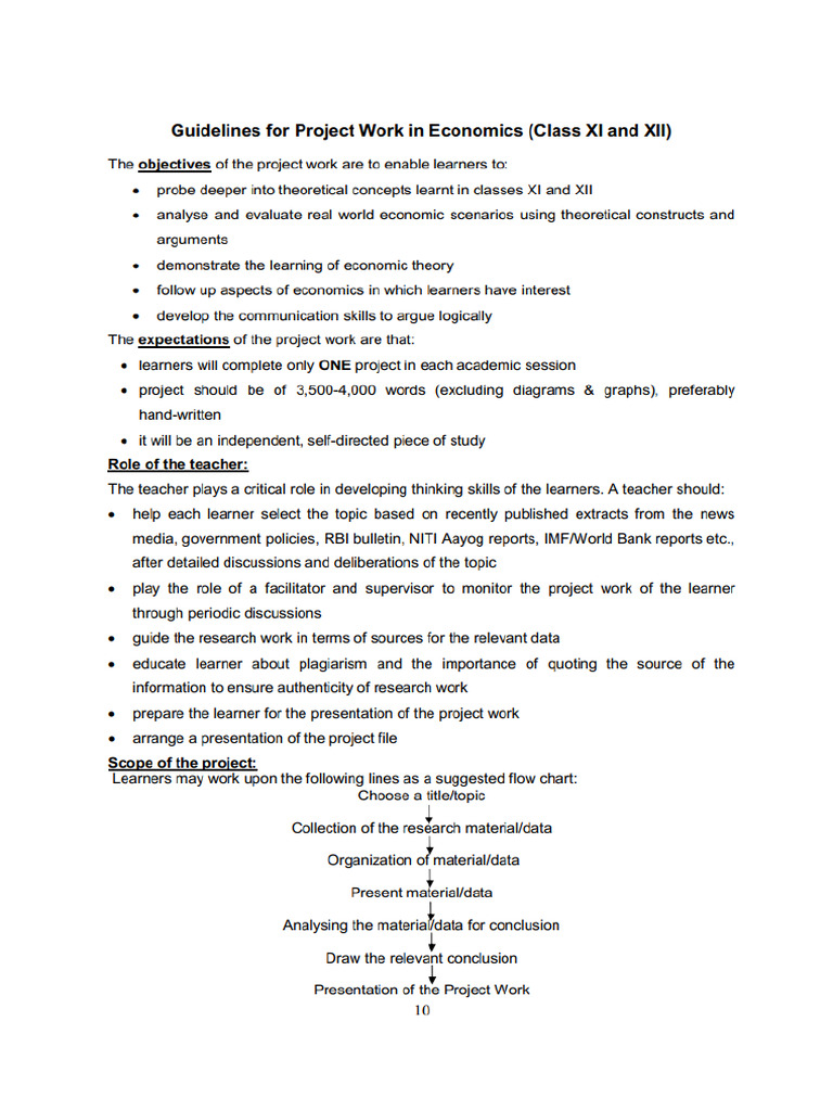 Guidelines for Project Work in Economics (Class XI and XIl)