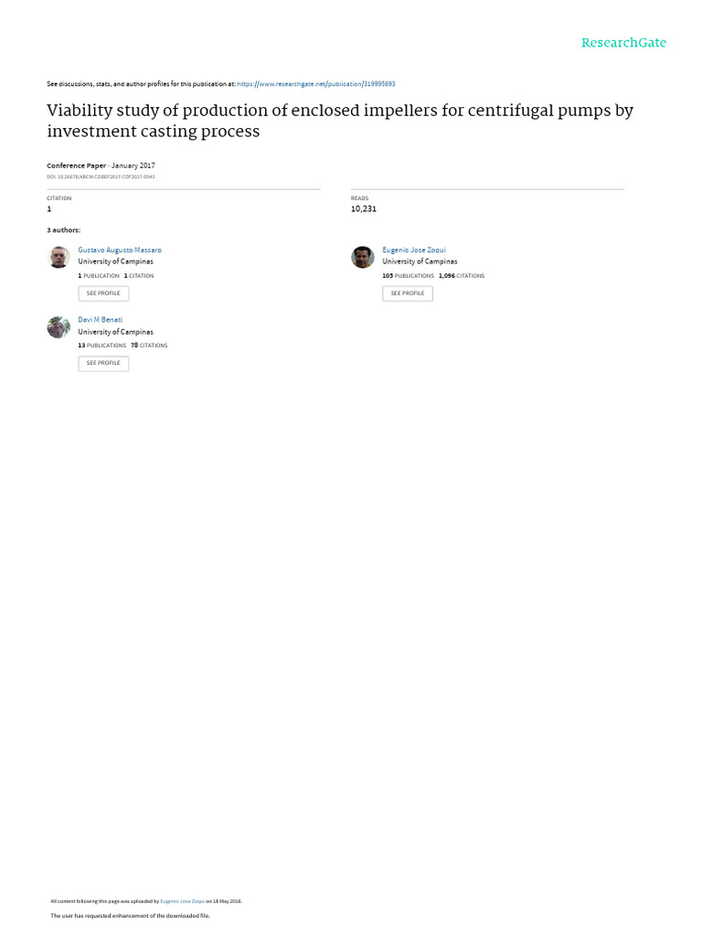 A viability study of production of enclosed impellers for centrifugal pumps by investment casting process was