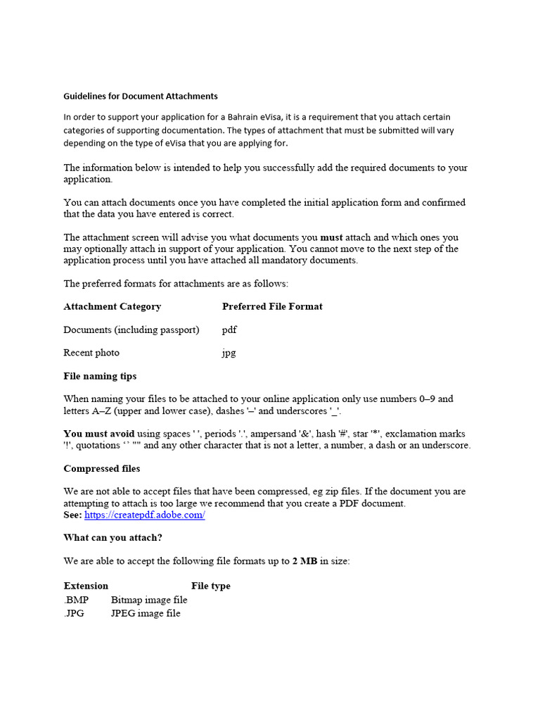 In order to support your application for a Bahrain eVisa, it is a requirement that you attach certain