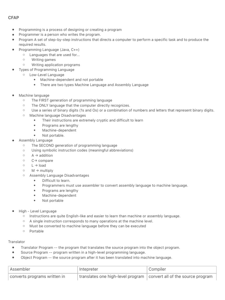 ○ Machine language Disadvantages