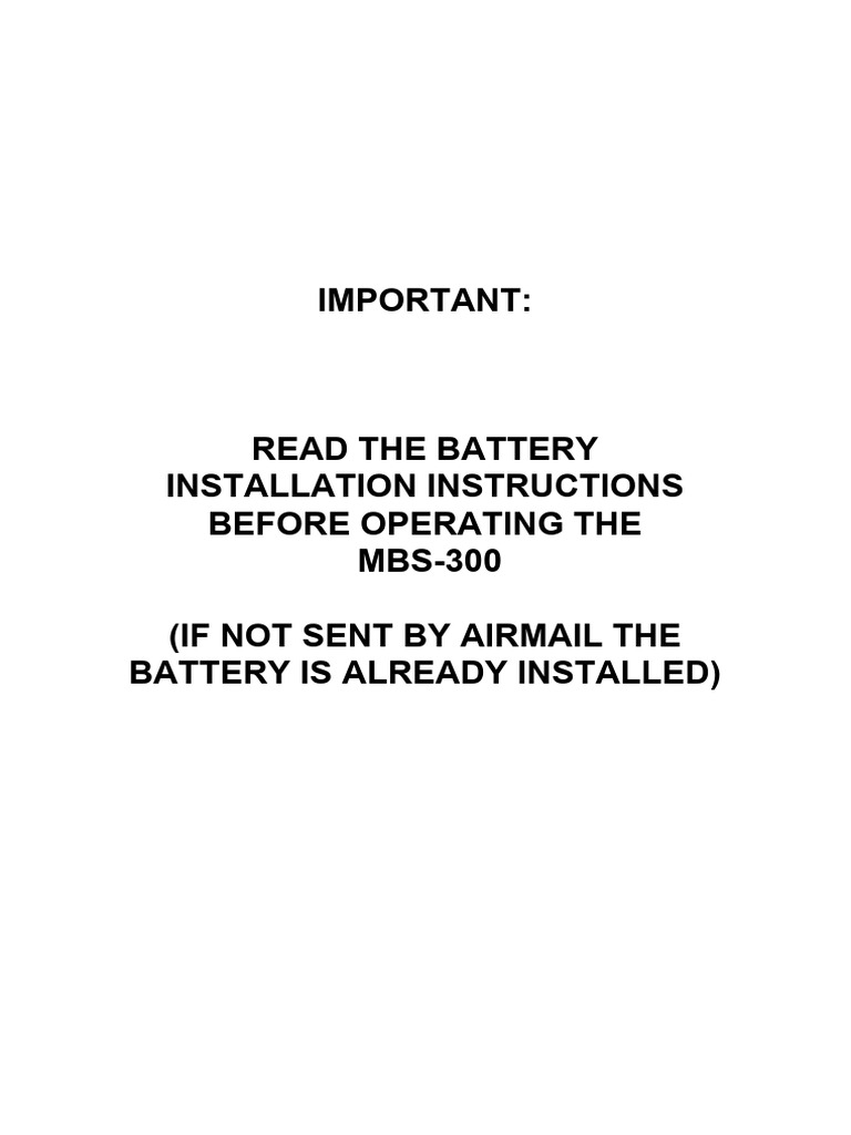 The MBS 300 is supplied with a minimum battery charge. Errors may result if