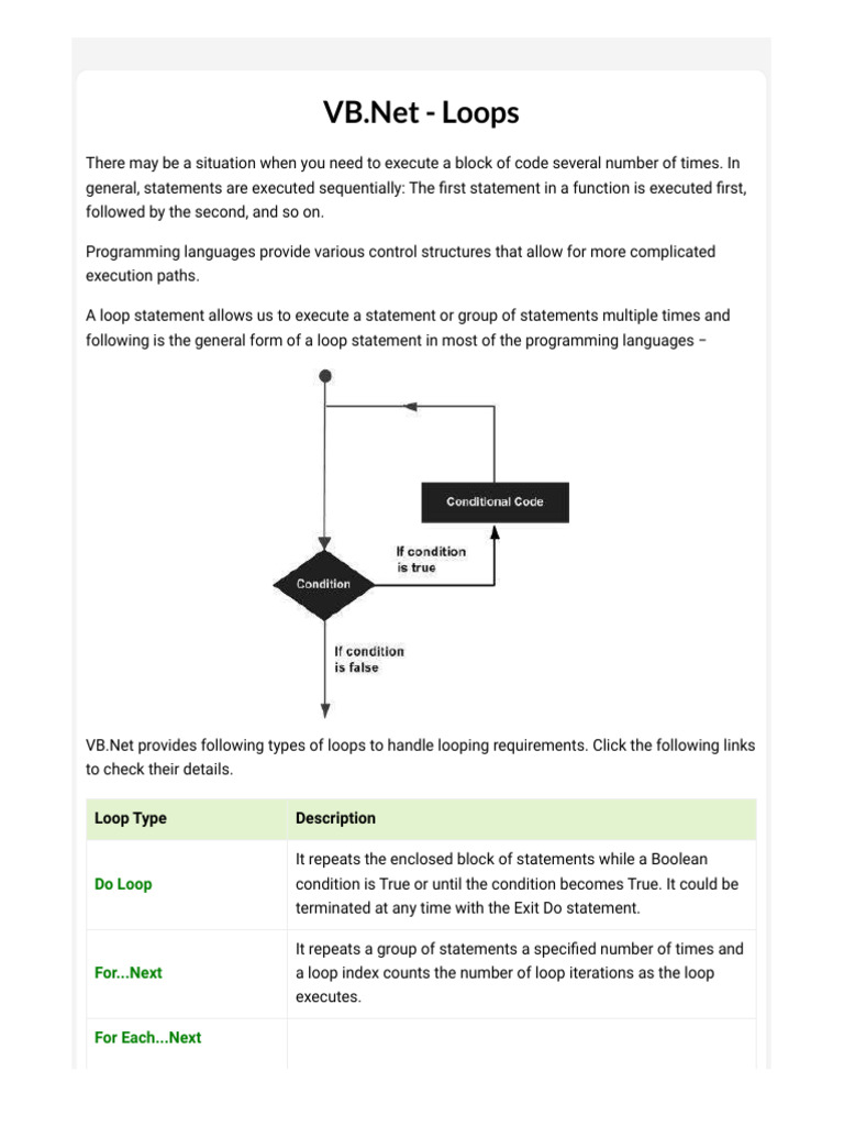 VB.Net provides following types of loops to handle looping requirements. Click the following links