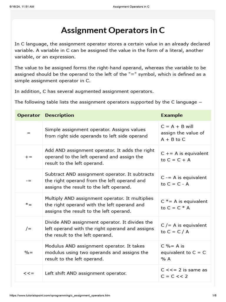 https://www.tutorialspoint.com/cprogramming/c_assignment_operators.htm 5/6
