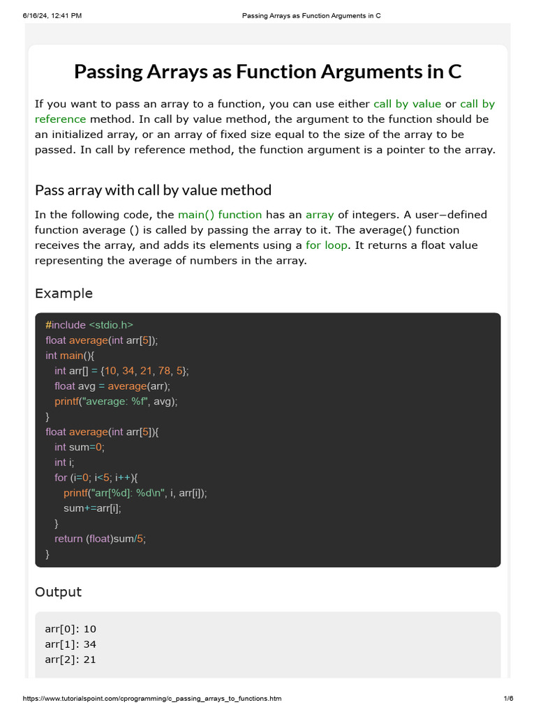 https://www.tutorialspoint.com/cprogramming/c_passing_arrays_to_functions.htm 4/6