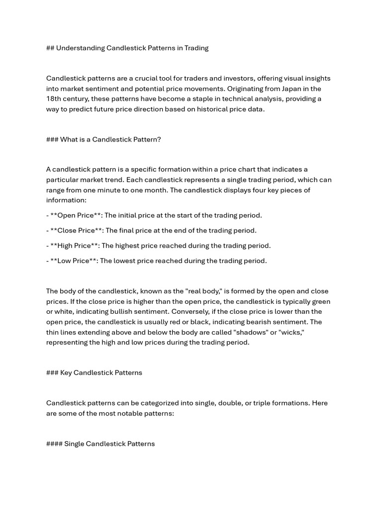 Candlestick patterns are a crucial tool for traders and investors, offering visual insights