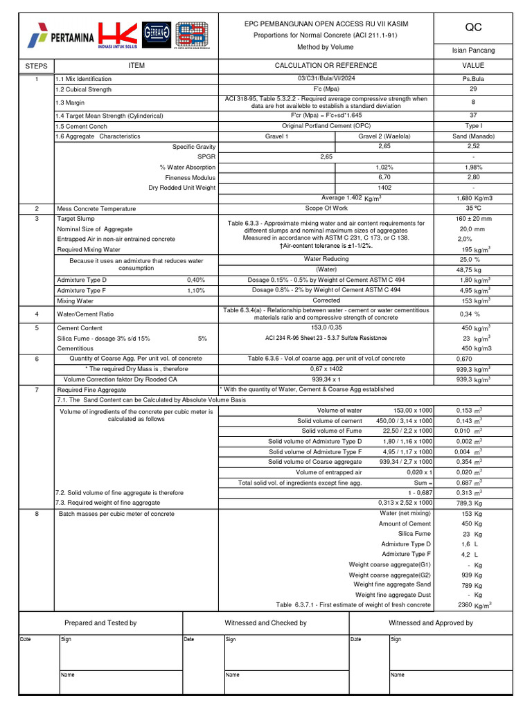 Solid volume of Coarse aggregate 939,34 / 2,7 x 1000 0,354 m3