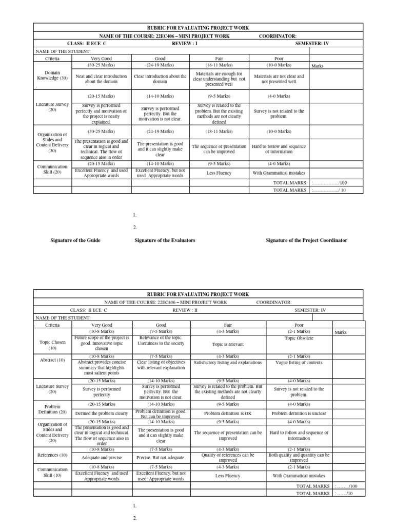 Signature of the Guide Signature of the Evaluators Signature of the Project Coordinator